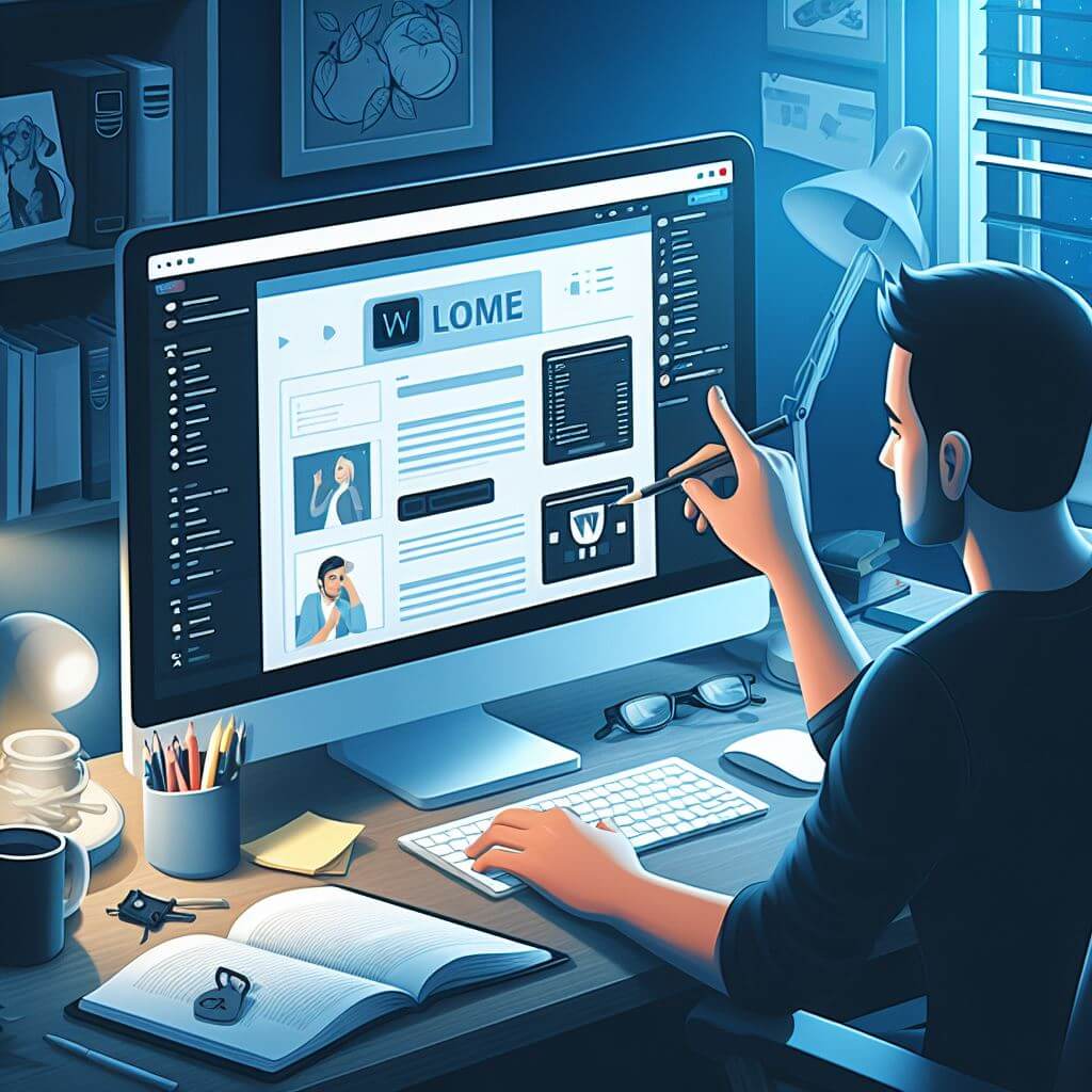 «An innovative web developer seamlessly integrating WordPress elements into a dynamic website design.»